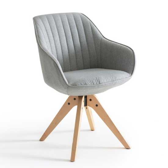 Komoda est une chaise de design avec assise ergonomique recouverte en tissu et pieds en métal avec effet bois. Chaise eco mesh avec bras pivotants. Bureau chaises ergonomiques accessoires d ergonomie tables et station assis debout.
